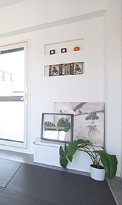 上部にはインターホンや電話を設置し、電話しながらメモをとる事もできます。また飾り棚や鍵置きスペースとしてもお使い頂ける、多機能スペースです。