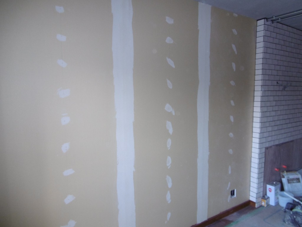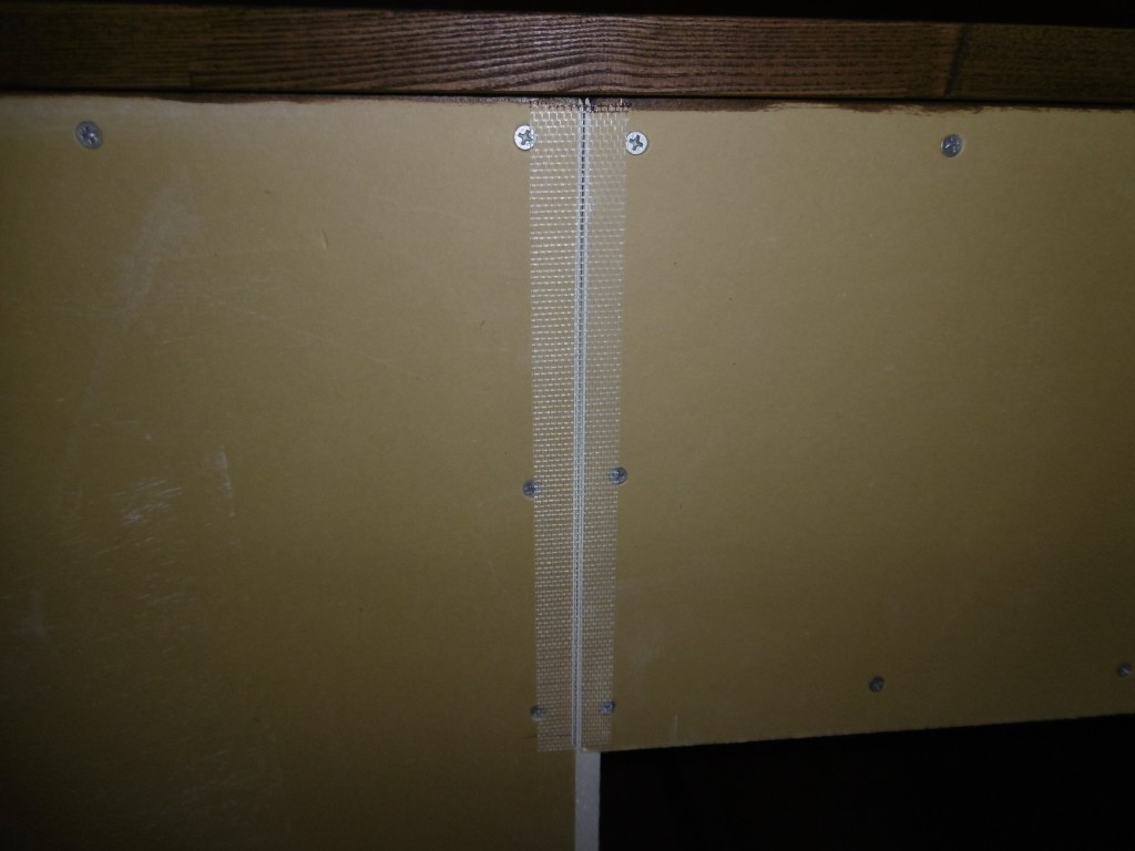 まずは、ファイバーテープと呼ばれているもので、継ぎ目の部分にテープを貼っていきます。
