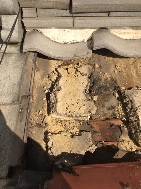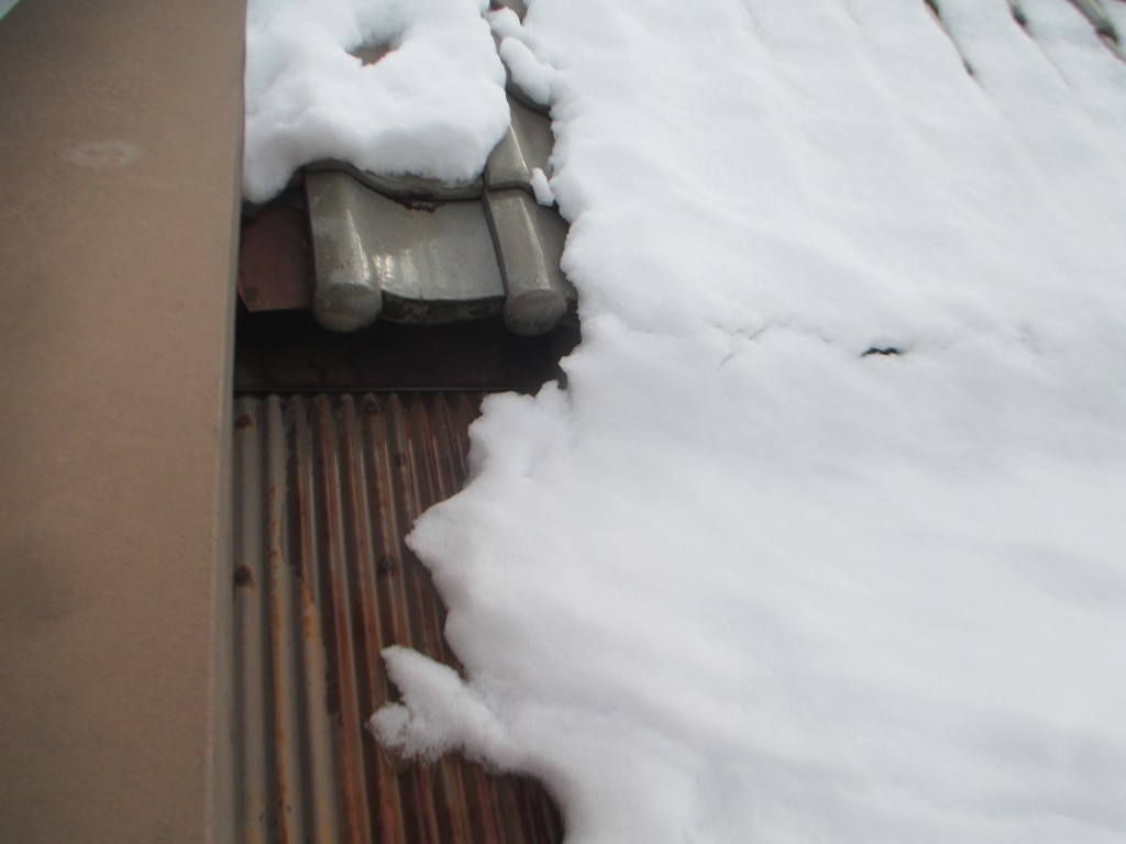 屋根瓦と鈑金の継ぎ目などからもゆっくり溶ける雪により毛細管現象をおこし、屋内に水を吸い上げます。(>_<)