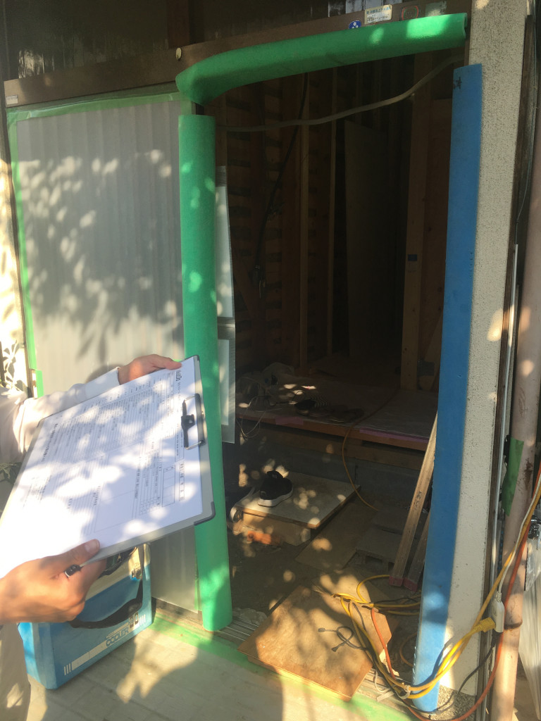 搬出入経路となる玄関養生