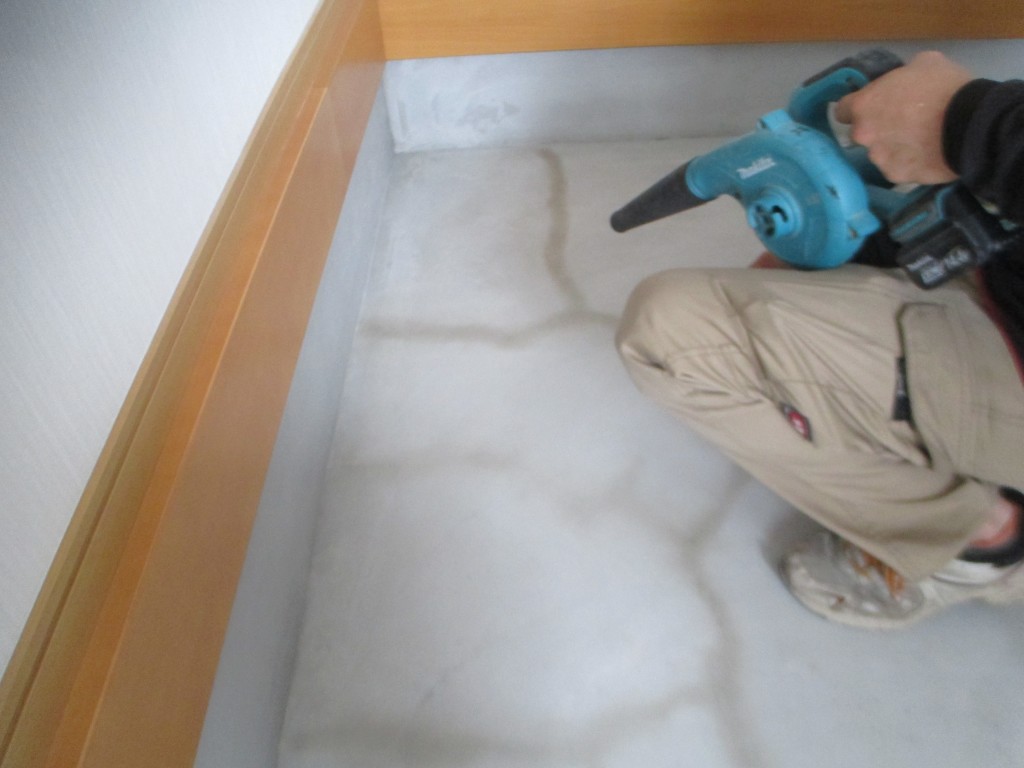 さて先日コンクリートの土間にひび割れがあり、補修するところを立ち合いました。