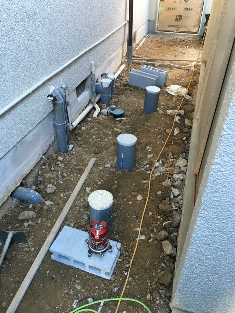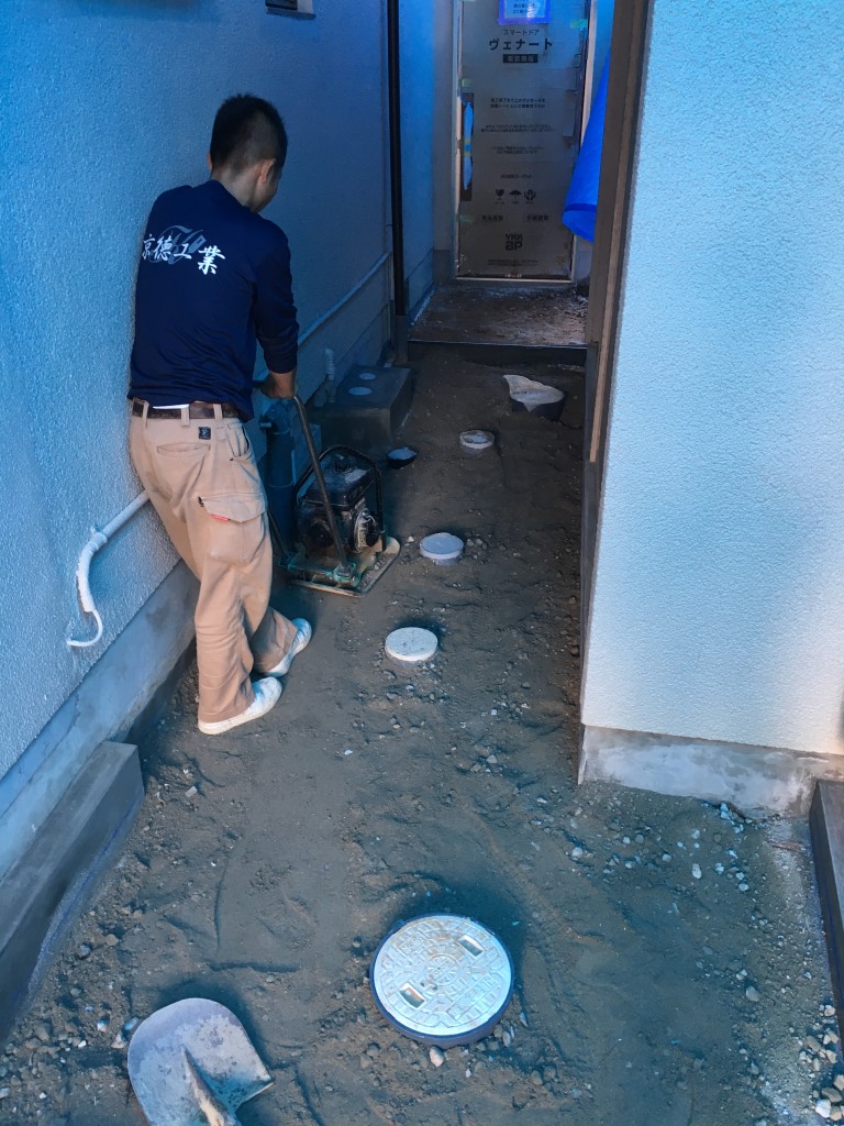 土間を打設するには必要に応じてマスをかさ上げする必要や盛土を行い押し固める必要があります。