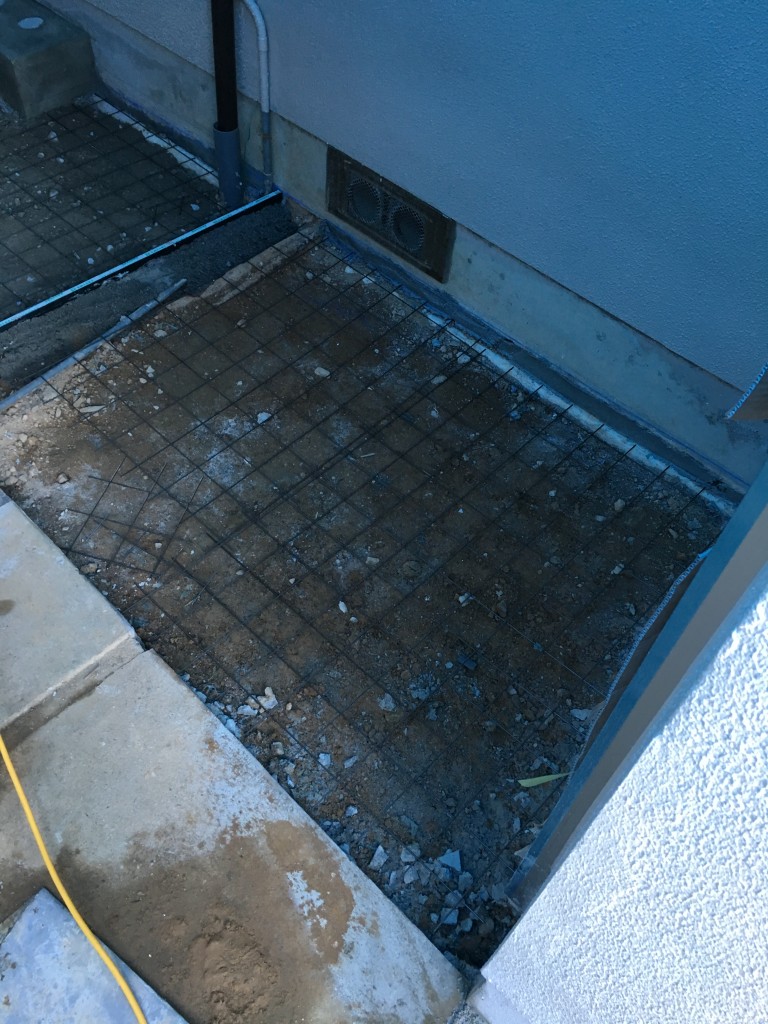 その後、ヒビ割れ防止のための目地取付、モルタルを定着させるためワイヤーメッシュを敷いていきます。