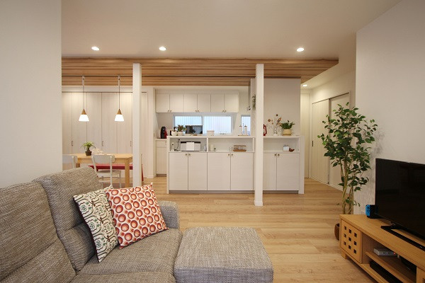 柱と梁が大きく出ているお家ですが、間取りの工夫で動線を遮ることがありません。