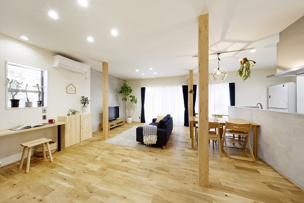 ナチュラルな空間に柱がすっかりなじんでいます。