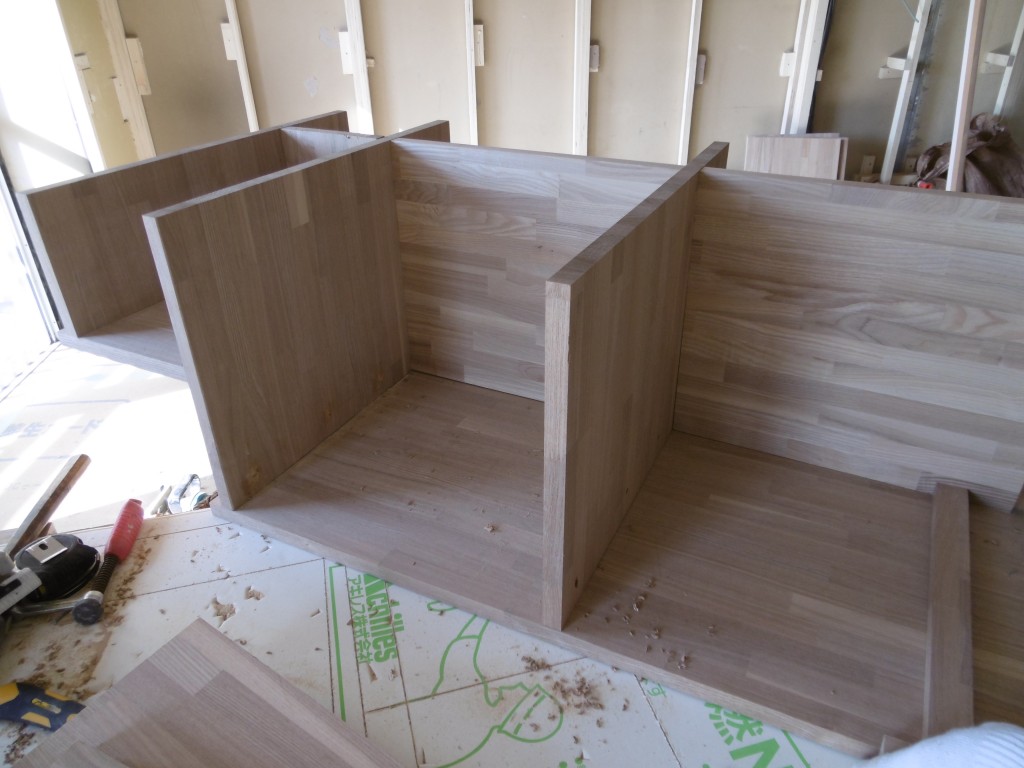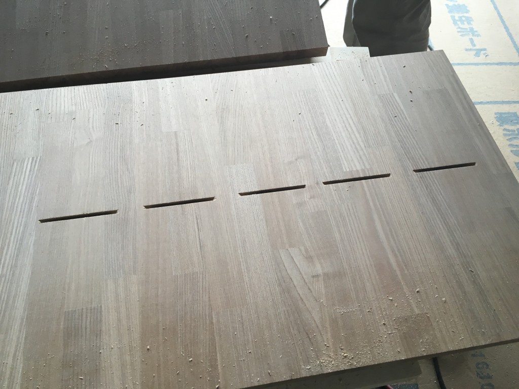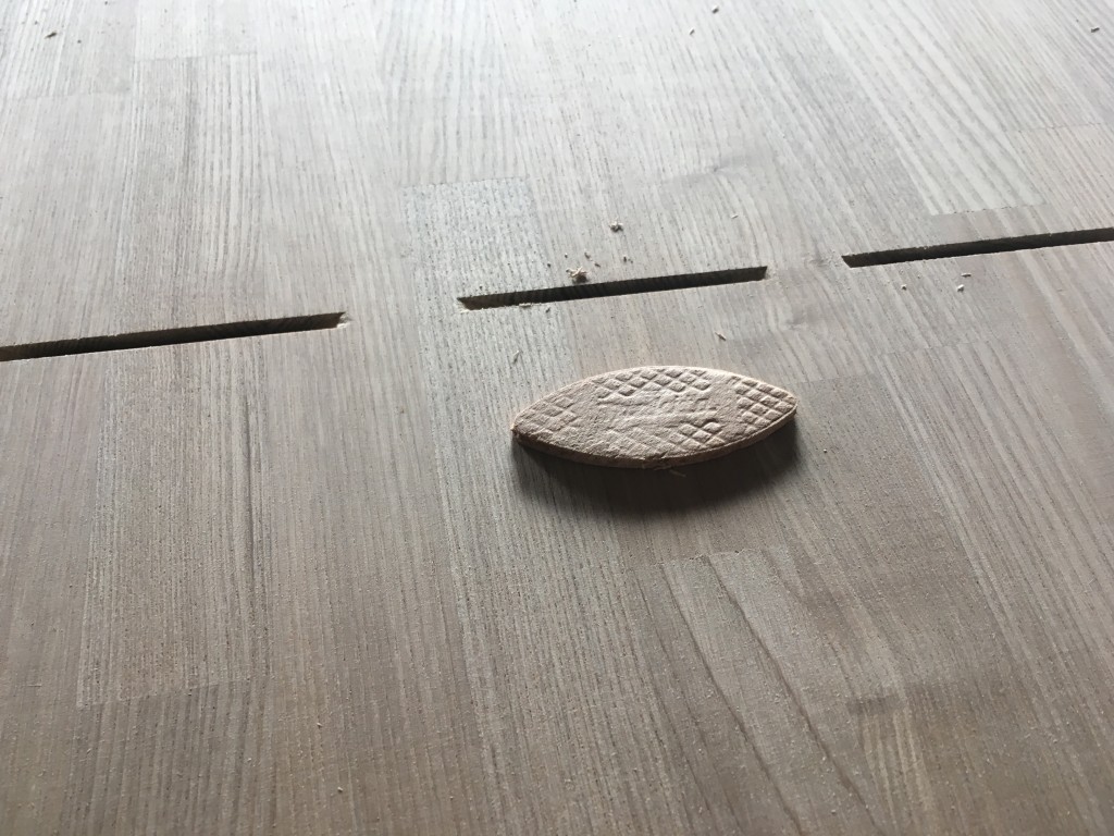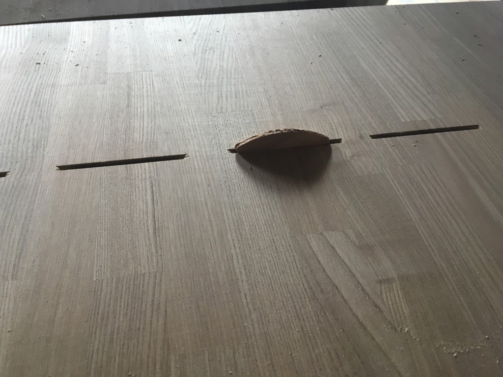 板にビスケットが入るくらいの溝を掘り、ボンドを付けたビスケットを差し込んでいくだけなのですlaugh