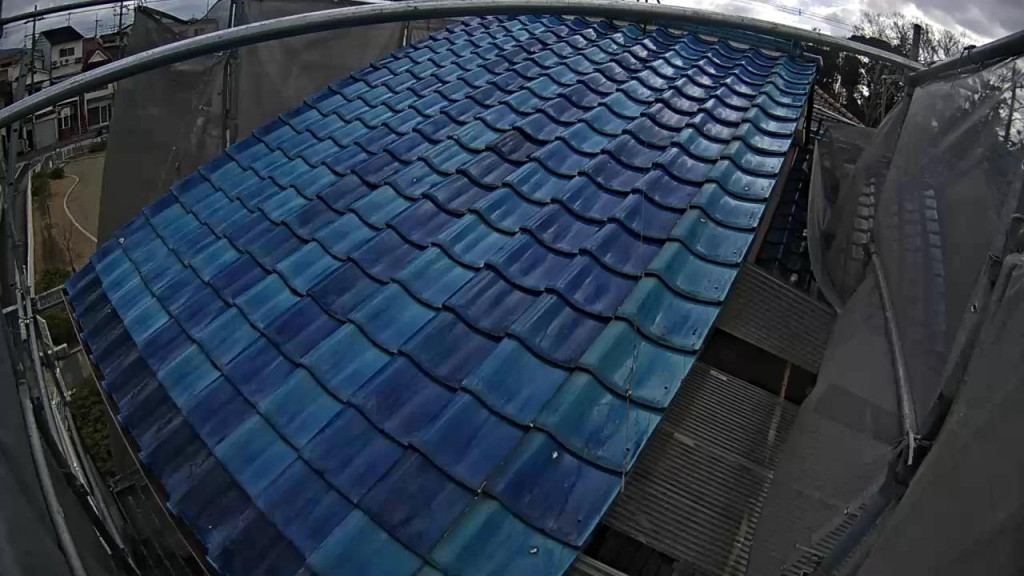 築40年~50年の家によく見られる釉薬(ゆうやく)瓦の屋根です。