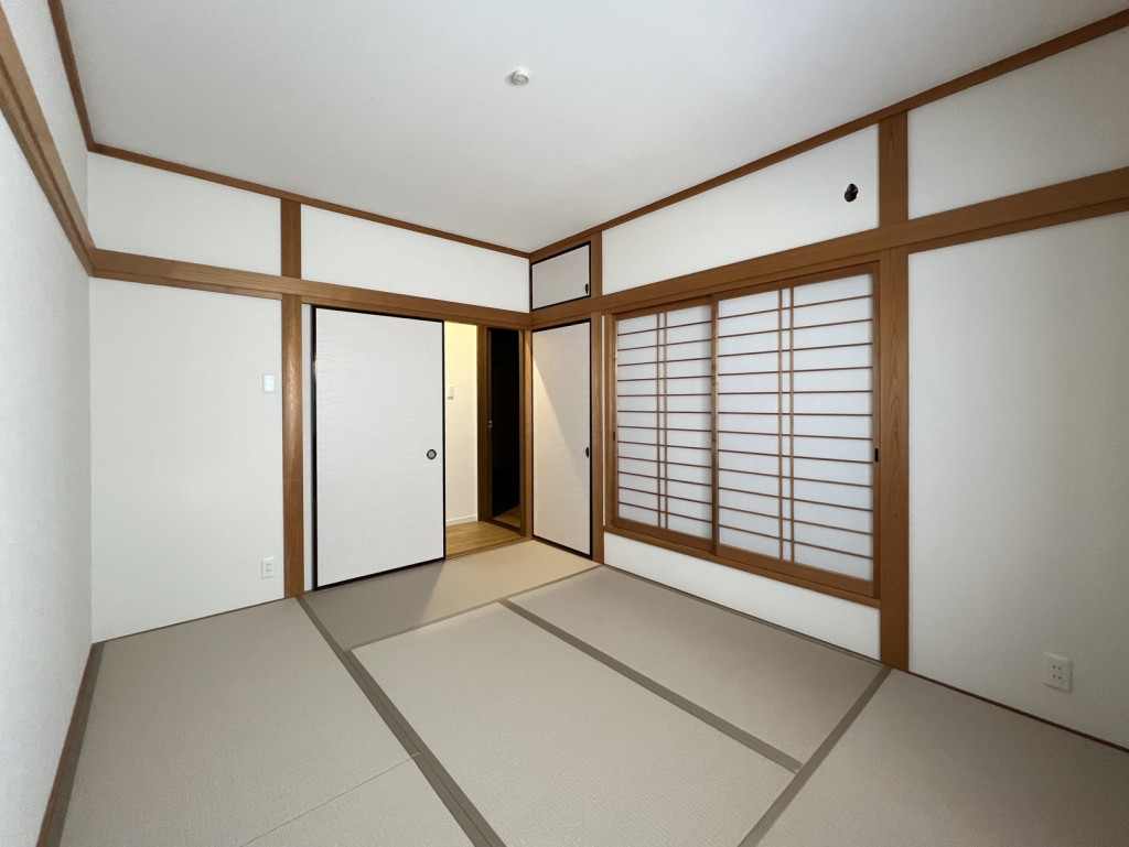 また、写真2枚目の入り口と収納の襖は貼替の為、既存の枠が残っていますが、シンプルな襖紙にしたことで統一感のある内装にまとめることができました。