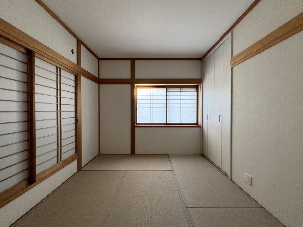 また、畳を和紙調の「灰桜」というグレーのものに変更し、収納はクローゼット扉にしたことで、すっきりとした印象に変化しました。