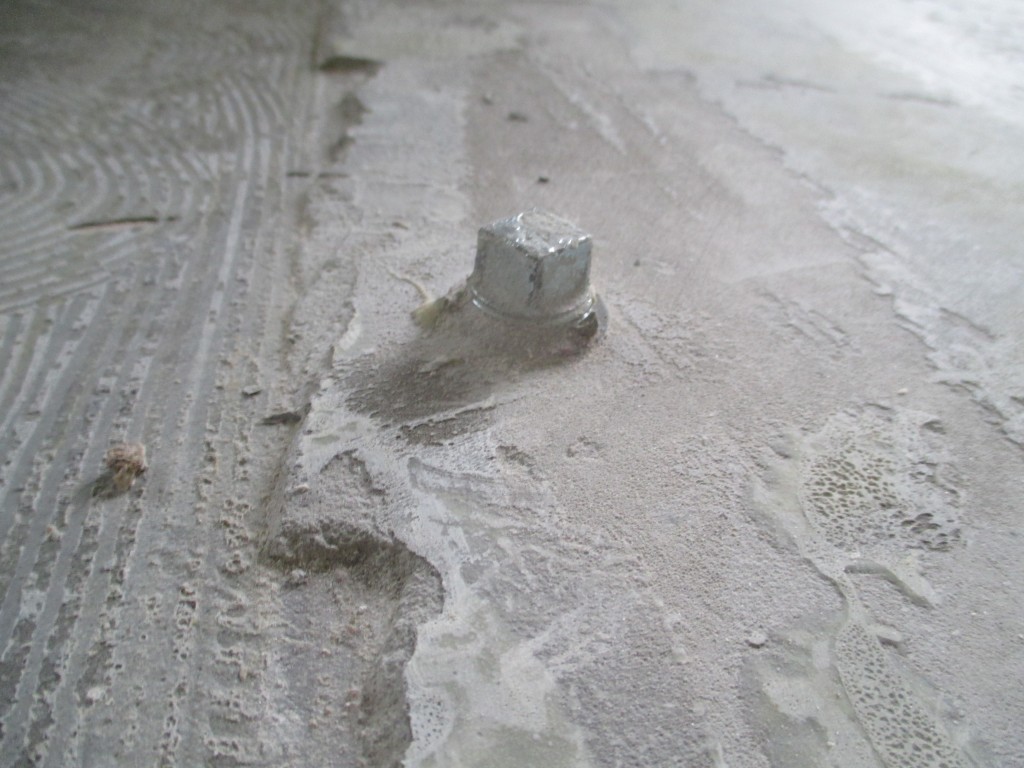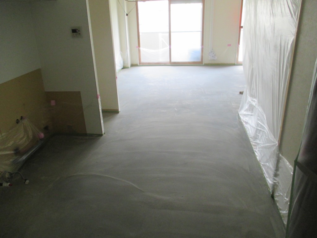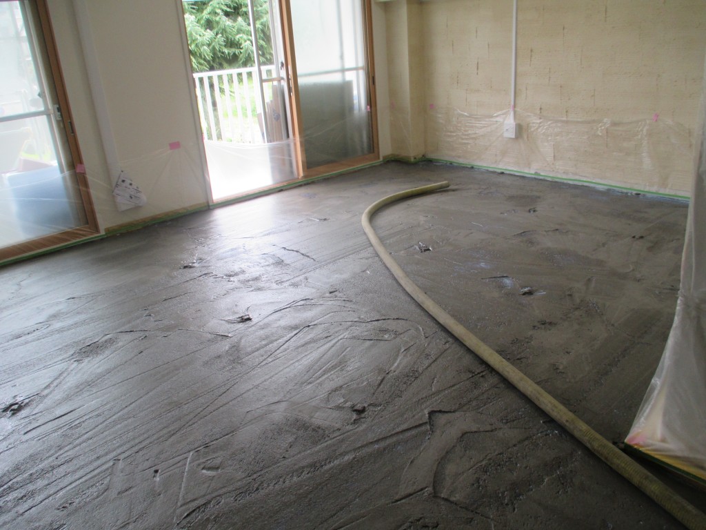 今回は床の下地状態が凸凹でよくない状態でしたので一度コンクリートを塗って調整をします。