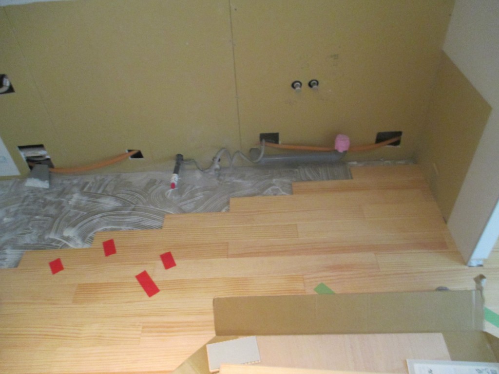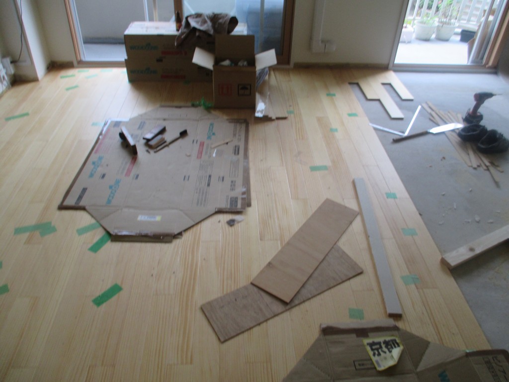 そして、床材の割り付けをし貼っていきます。
