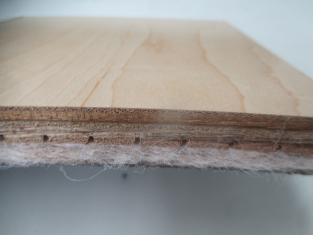 マンションのフローリング材は下階の部屋などに音や衝撃を軽減する為に床材の下にクッション材が付いています。