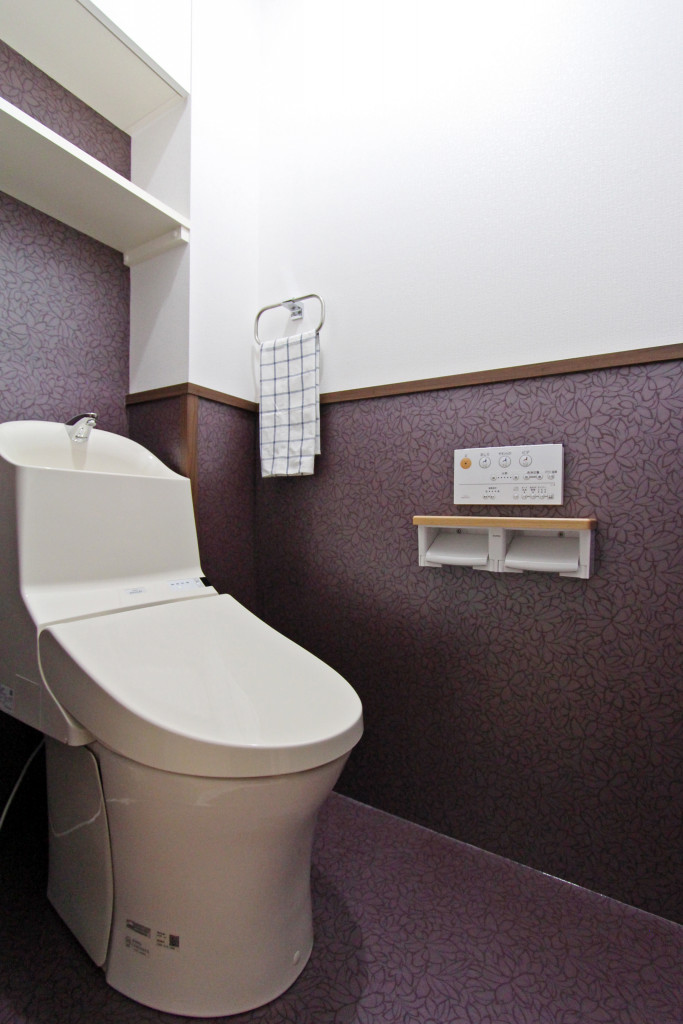 おトイレは腰高くらいまで、床と同じCFを貼りました♪