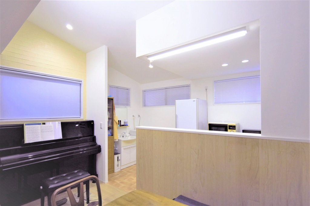 黄色の珪藻土が室内を明るくしています。