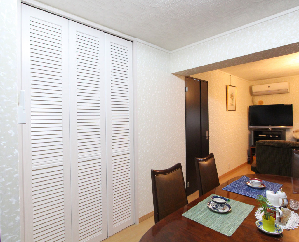 扉は見た目と空気の流通を考え、ルーバータイプにしました。