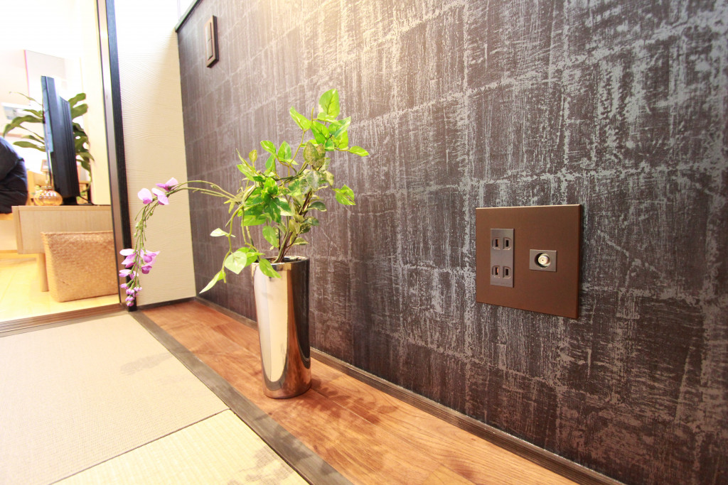 こちらは、和室にあるアクセントクロス部分のコンセントとスイッチです。