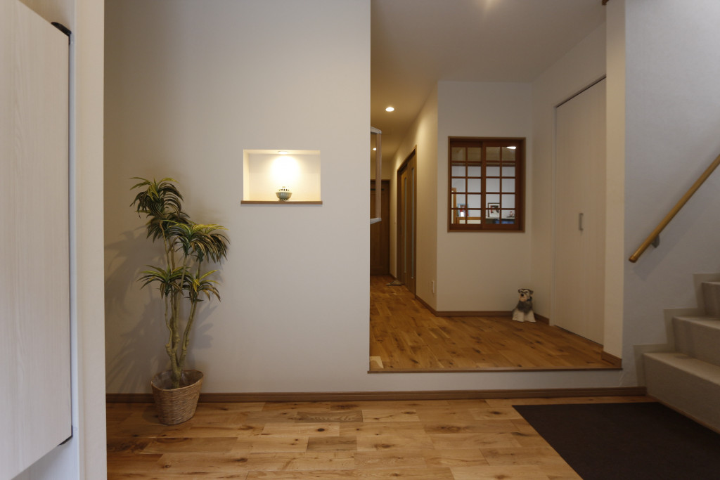 こちらのお家では、玄関と和室を仕切る壁に室内窓を設置しました!