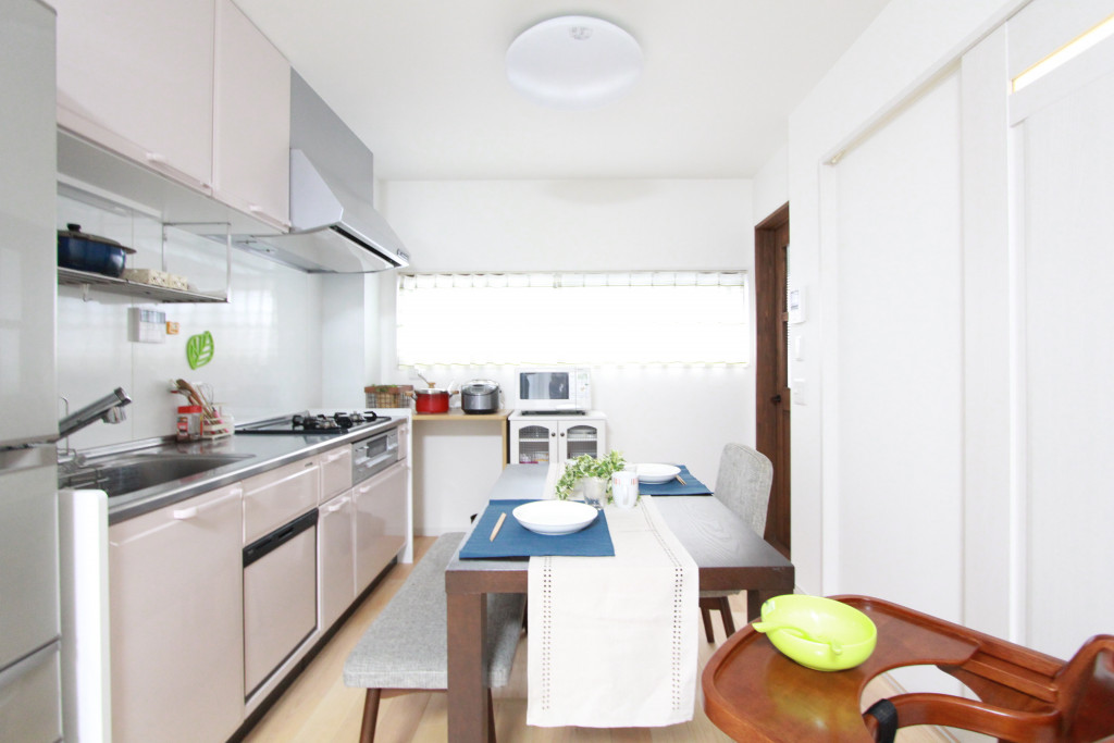 キッチン小物や家電・ダイニングテーブルを置くとこんな感じになります。