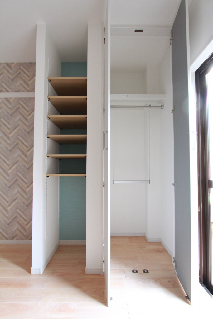 上のハンガーパイプにはお洋服をかけて、無駄なスペースがないように