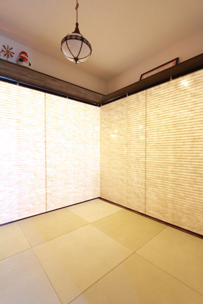 こちらの部屋はプリーツスクリーンで仕切れるようになっており、娘様達が帰って来た時の客間になります。