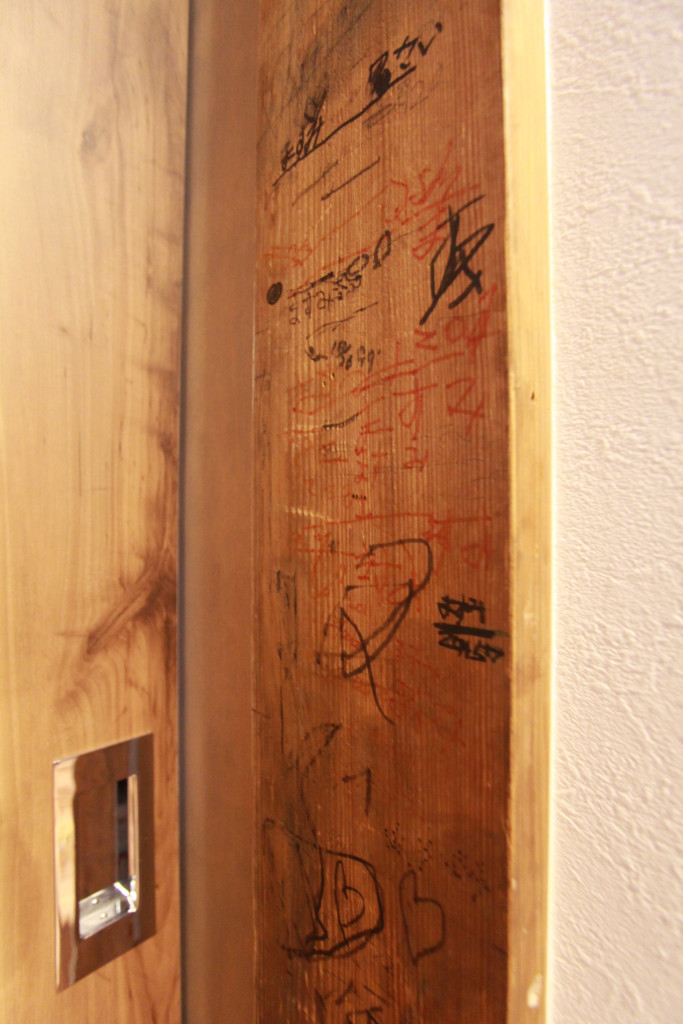 寝室のドアの横に記録がのこっている面だけ残し、壁に貼り付けさせていただきました。
