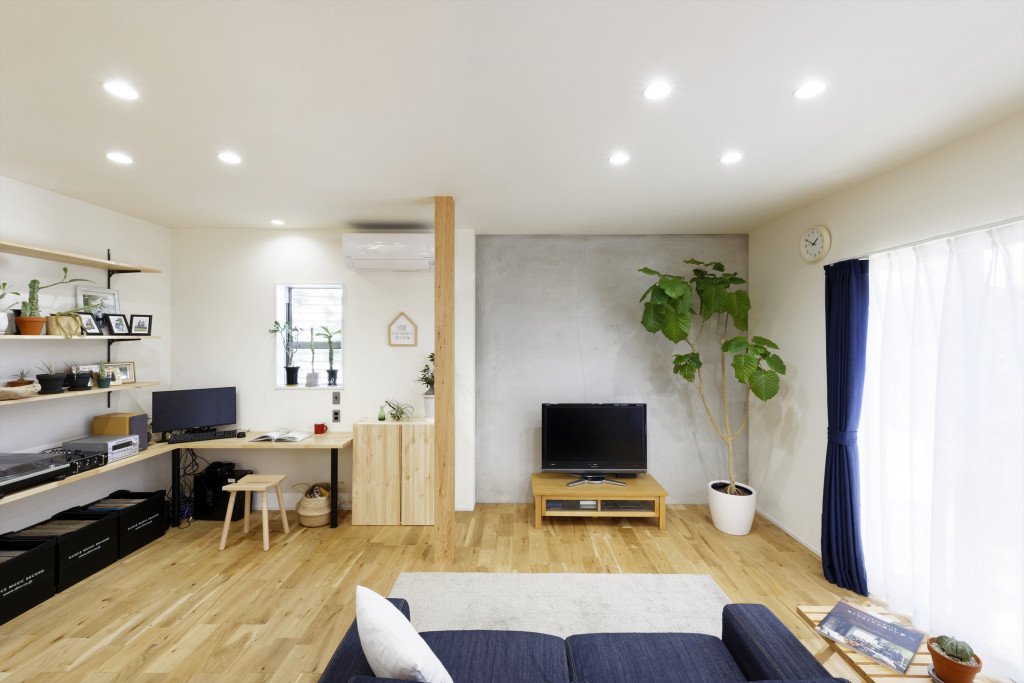 風通しが良いのと、作業するのに便利です。N様の好きな観葉植物とレコードを置くスペースにも。