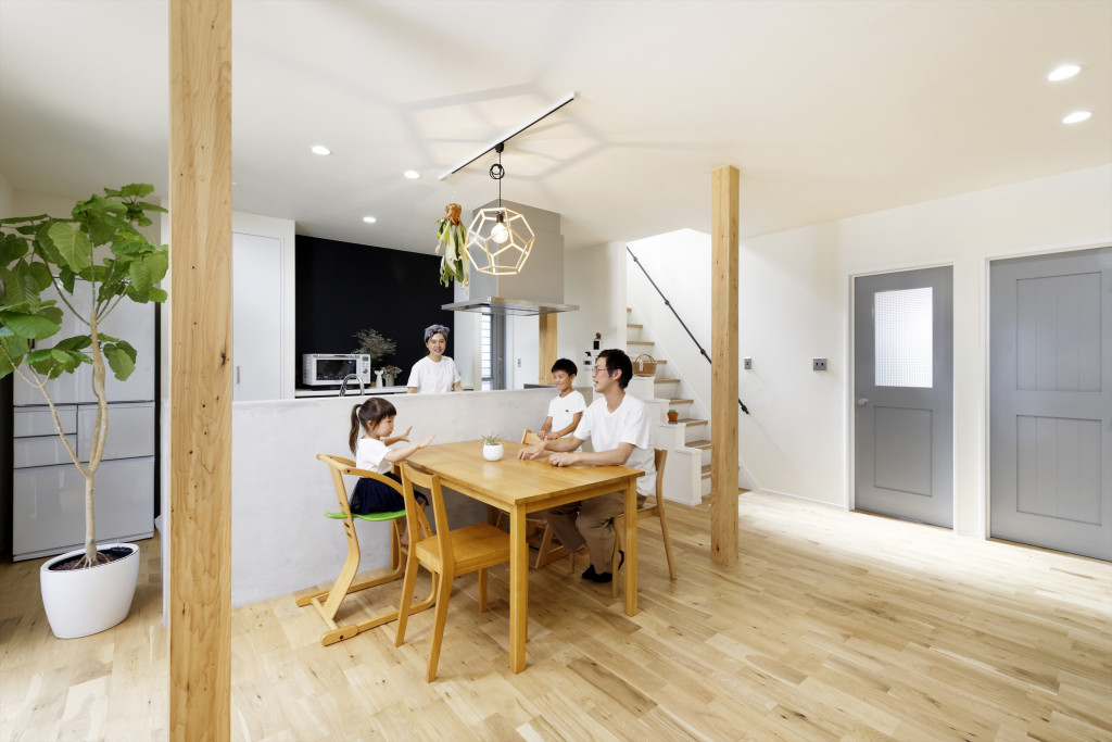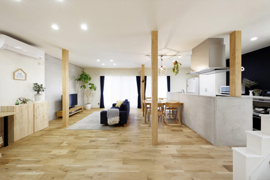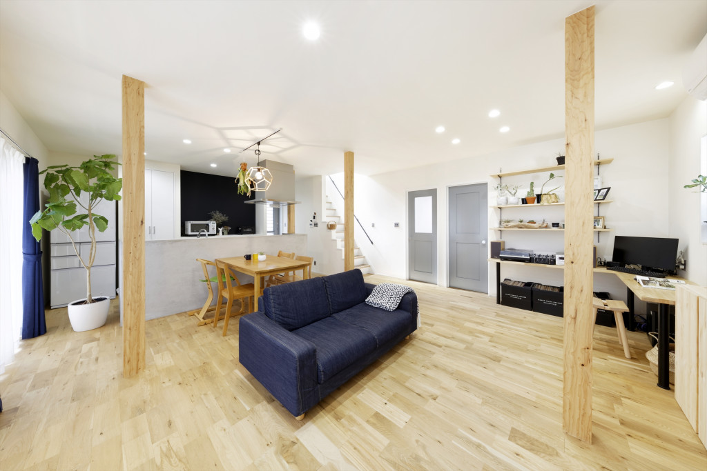 元々、節のある床材がお好きなN様。床に合わせて柱も木の雰囲気にしました。