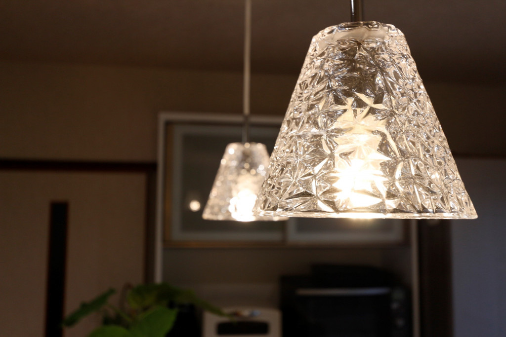 キッチン前の照明にはガラスのペンダントライトを!