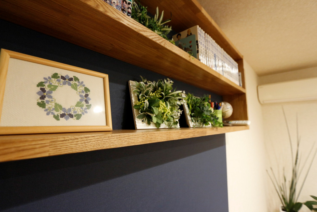 (造作した本棚にはS様のハンドメイド作品が並びます☆)