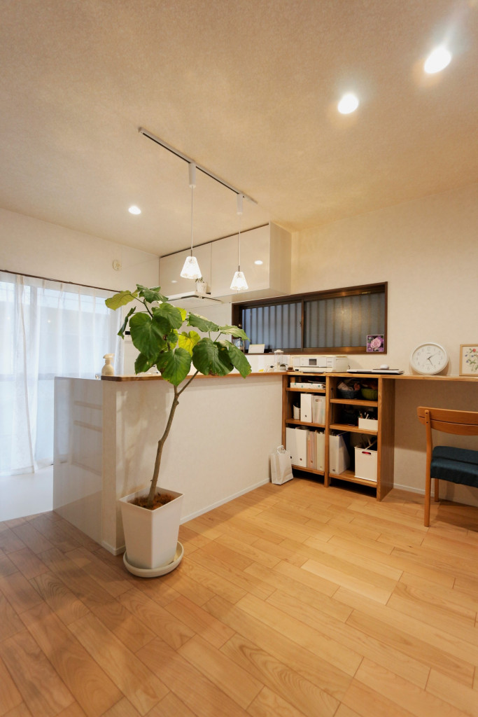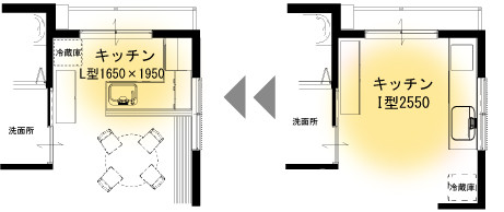 キッチンは壁付だったものをL型の対面キッチンでご提案。