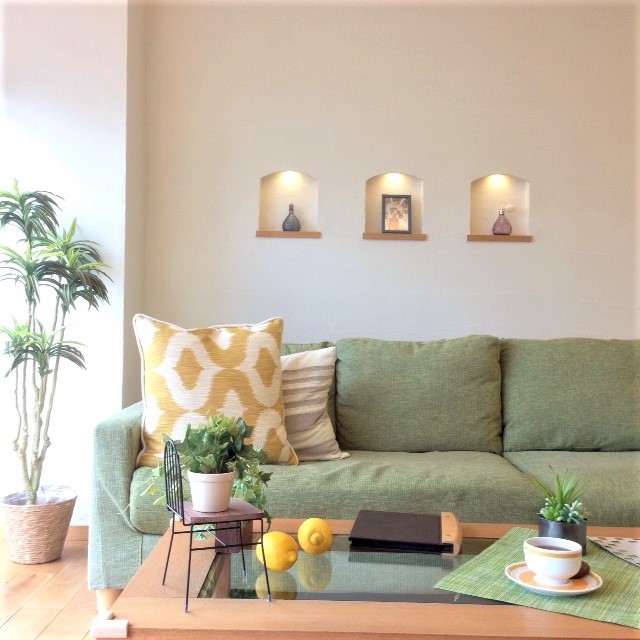 今日はお客様のリビングに見立てて小物を置いてみました。