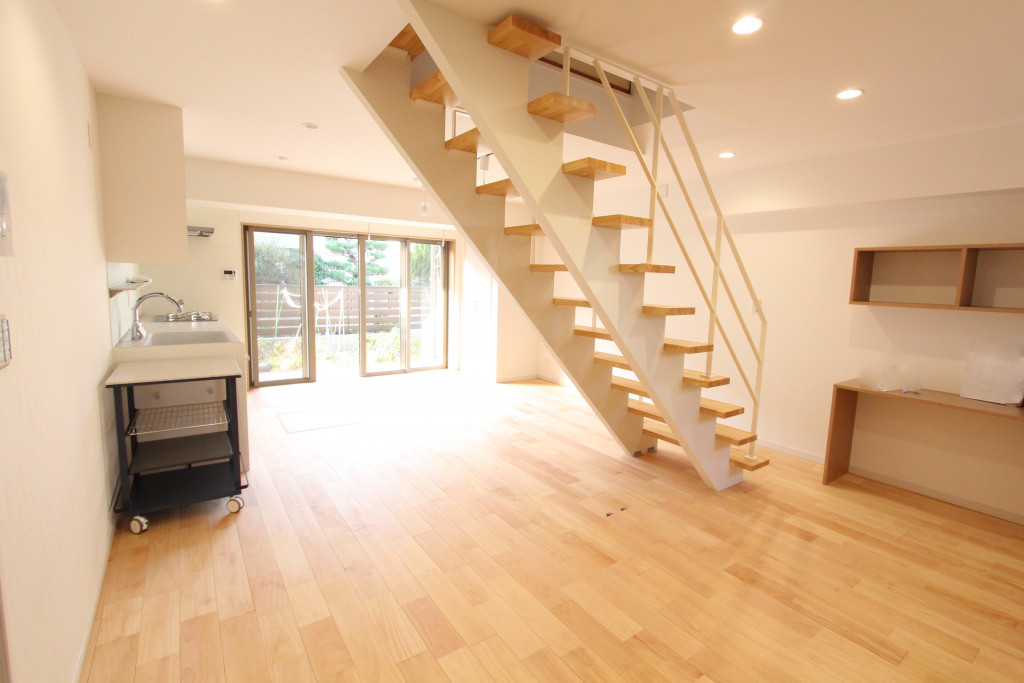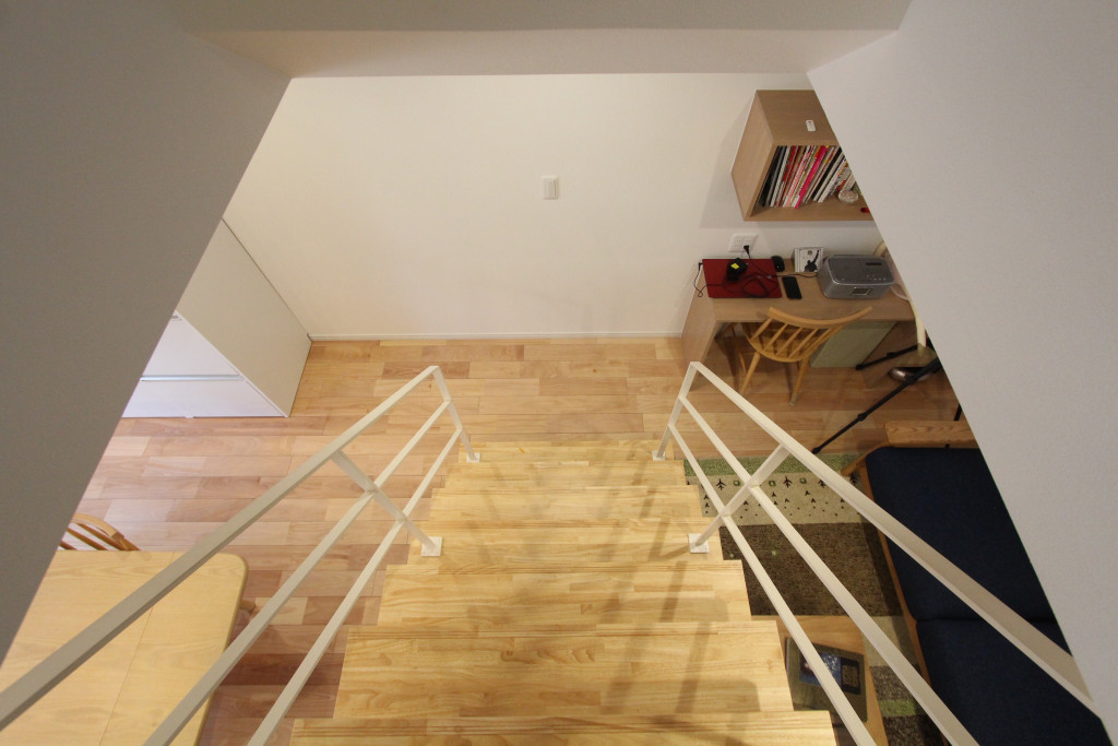 どこか女性らしい柔らかな印象を与えてくれるのがサクラの無垢材。温かみのある色なので、白を基調とした空間やナチュラルでシンプルな家具との相性も抜群です。N様邸では階段の踏み板も無垢フローリングと合わせた色味で明るい空間に仕上げました。