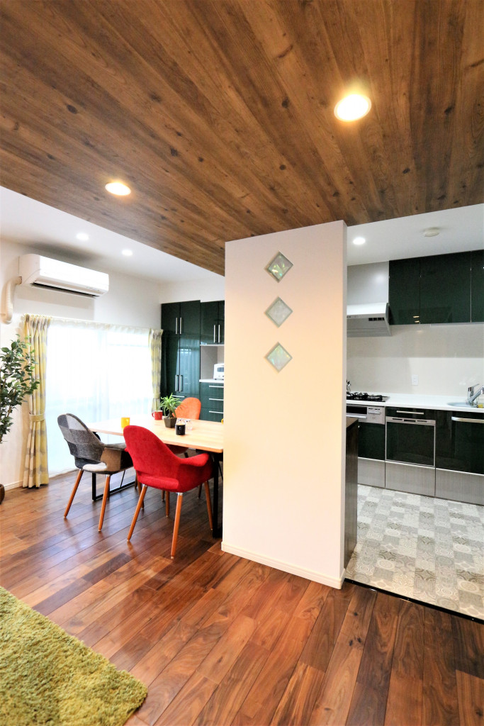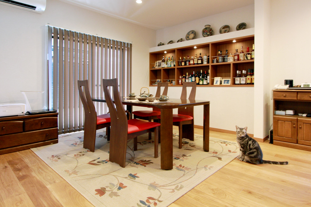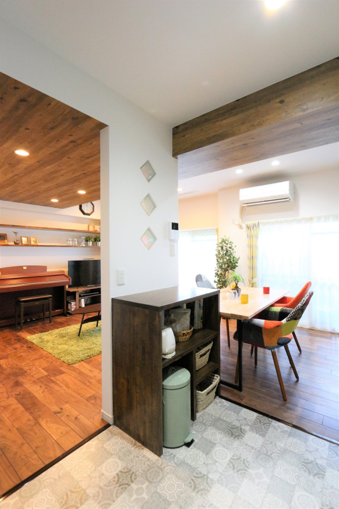 リビングから見ると、キッチンとカップボードが見えますが・・・