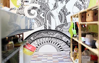 キッチン壁のクロスは、「自分で描けいてみたら面白そうだな」と思い、せっかくなので描こう!ということになりました。