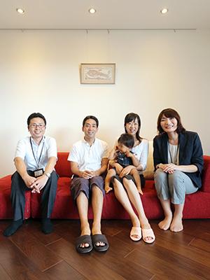 H様ご家族(中央)、リフォームアドバイザーのH(左)、プランナーのO(右)