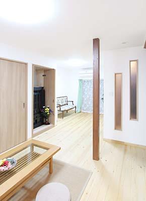 無垢の床でワンちゃんも喜ぶLDKを実現されたリフォームです。