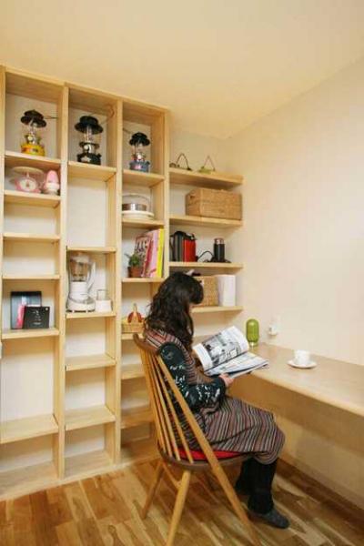 【キッチン横に造作した収納棚と奥様専用の家事カウンター】