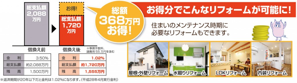 マイナス金利政策スタート!!住宅ローンの借換えでリフォームができる!