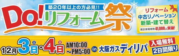 - 2016年12月3日(土)-12月4日(日)Do!リフォーム祭 in 大阪ガス ディリパ 開催