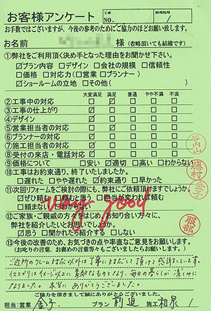 ご近所のクレーム対応以外は丁寧対応して頂けて感謝しています。仕上がりはイメージ以上に素敵なものとなり毎日の暮らしが楽しみになりました。本当にありがとうございました。