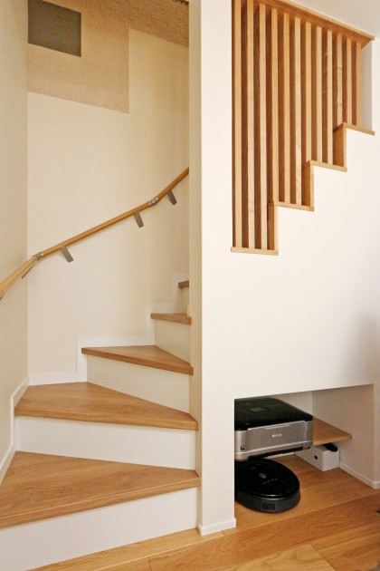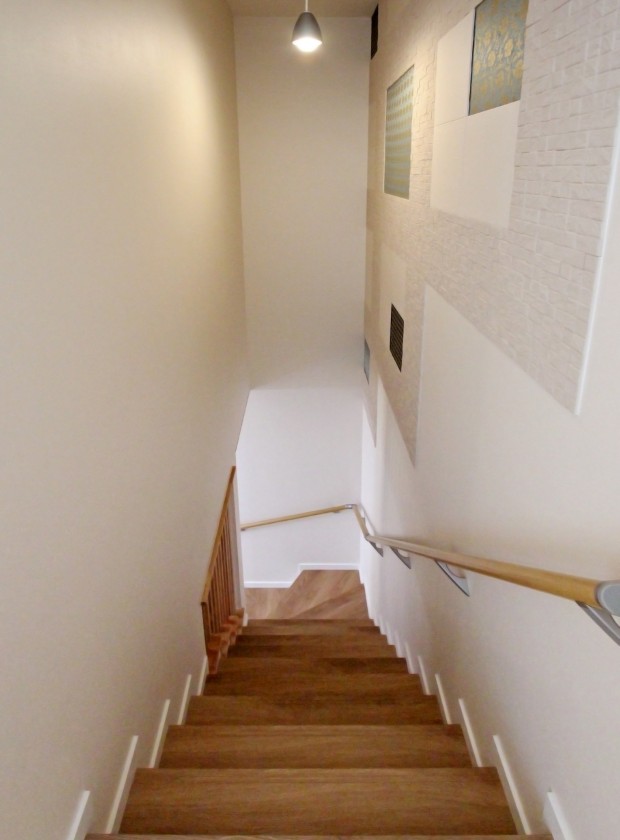 【階段】階段を架け替え、白を基調とした明るい階段スペースに。