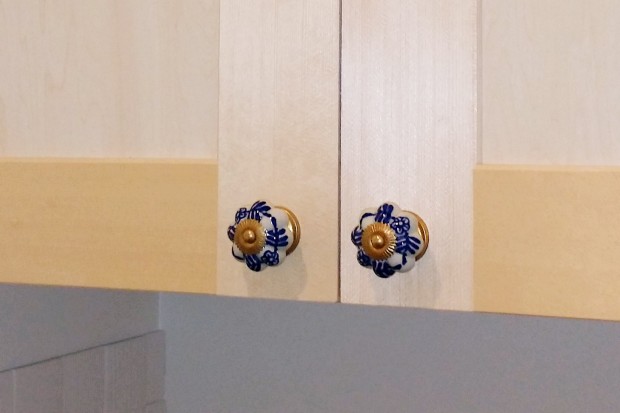 造作の吊り戸棚の取っ手は、娘様のこだわりポイントです!(写真上)