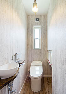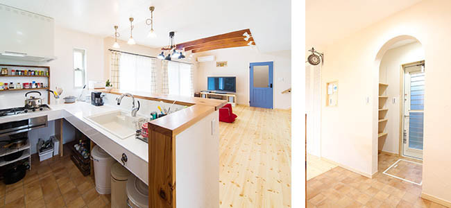 【右:パントリー】キッチンに隣接させ、奥には勝手口を設けて一連の流れをキッチンで完結できるようにしました。