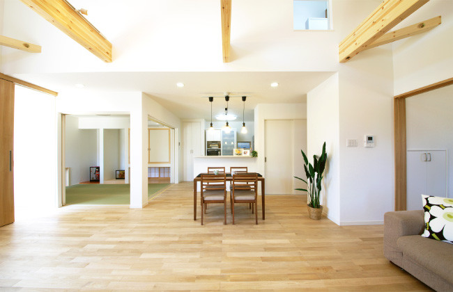 吹き抜けリビングのナチュラルな家