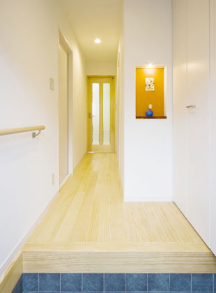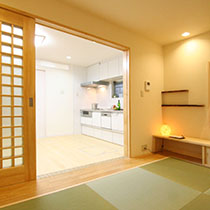 「明るくして欲しい」などの要望はお伺いしましたが、実際どういう感じにしようと悩まれていたので、現場見学会で実際に見ていただきました。それからはお客様がご覧になり、気に入られたパインフローリングや和室の中の竹フローリングを入れたりと気持ちのよい無垢材を提案しました。また、部屋が暗いので、明るくしたいということで、採光ドアや明るい色の無垢フローリングを提案しました。 何度も提案しきお客様と打合せをしていったことで、お客様と家族のように話したりたりと何でも話せる雰囲気になれたことで、最終的にはいいプランが提案できたと思います。