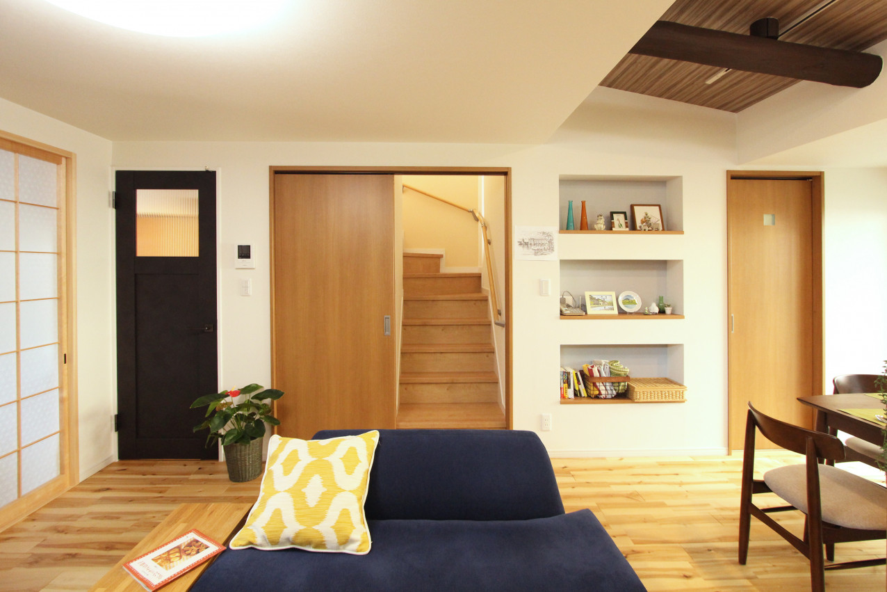 階段の手前には扉を設けているので、リビング階段でも冷暖房の効率はばっちりです。