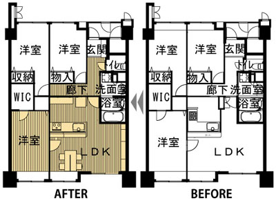 中古物件を購入して自分好みのシンプルなデザインの内装で統一したいということでお願いしました。床と壁も明るい色になり、とても気持ちのよい空間となりました。ありがとうございました。