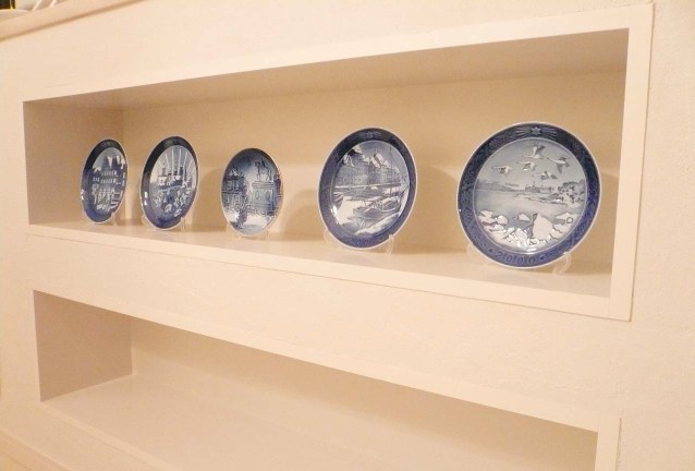ご主人様が出張の時に買われるイヤープレートをカウンターの下の収納に飾りました。