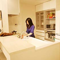 新しいお住まいをシンプルにスッキリさせたいということでしたので、家具やお客様のお気に入りのイヤープレートが映えるように、デザインや色決めを提案致しました。施工後もシンプルかつきれいに使っていただけ、また、私どももお二人の新しい生活の住まい作りのお手伝いが出来、とてもうれしく思います。このたびはありがとうございました。
