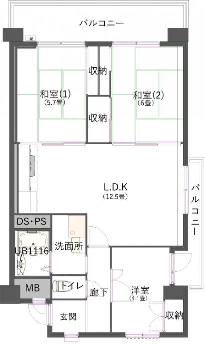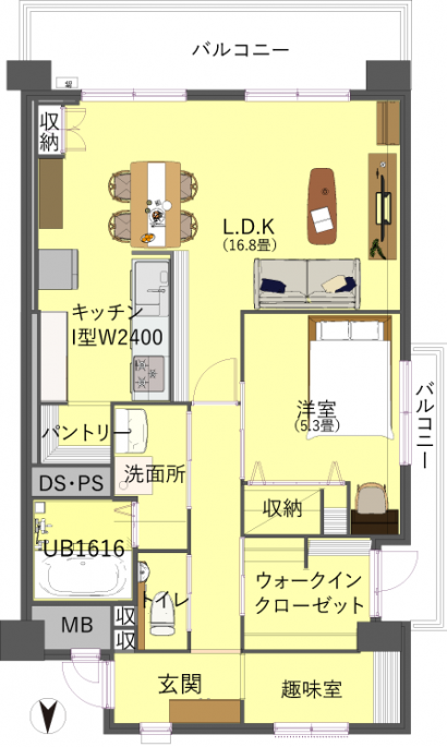 二部屋の和室をなくし大きく間取りを変更。南向きの明るいLDKになりました!